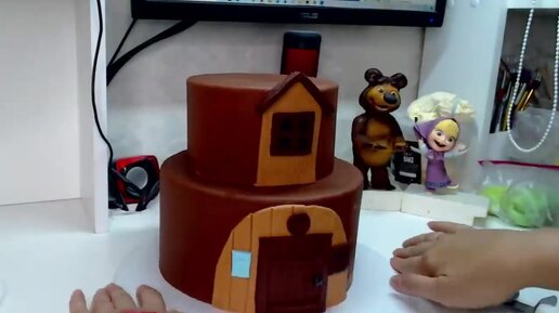 Оформление торта в стиле мф Маша и медведь_How to make a Masha cartoon cake and a bear
