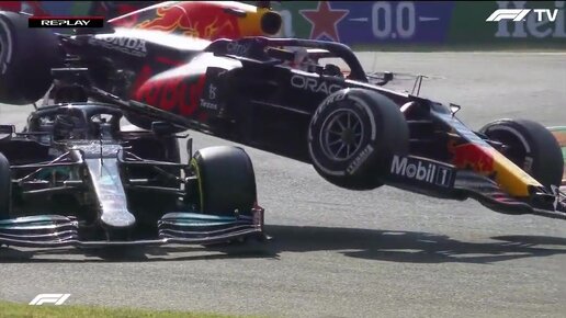 Эпичное столкновение Льюиса Хэмилтона из «Мерседеса» и Макса Ферстаппена из «Ред Булла».