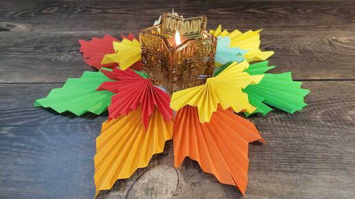 Красивая осенняя композиция"Подсвечник в листьях". Осенние поделки из бумаги своими руками.