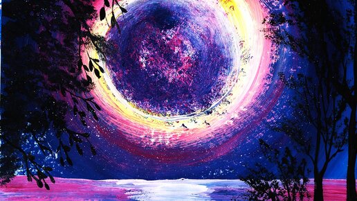 Как нарисовать пейзаж легко. Рисуем луну красками. Правополушарное рисование.