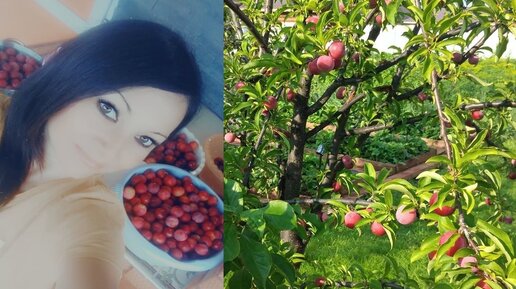 Собираю сливы ведрами. Обзор сада, плодовые деревья, цветы.
