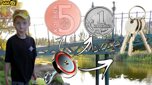 Магнитная рыбалка с моста. Устин достаёт монеты. Ключи и крюк.