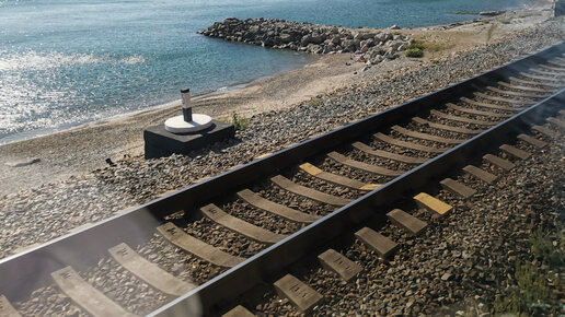 Едем на поезде и наблюдаем красивые морские пейзажи.