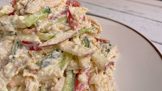 Приготовила салат с куриной грудкой, яблоком и омлетом. Делюсь рецептом и показываю, что получилось