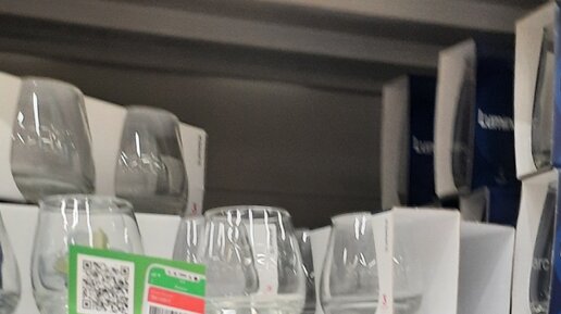 Красивые бокалы, чашки и вазы в магазине О'кей.
