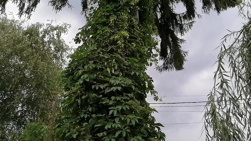 Посадила я хмель и дикий виноград к голому стволу большой ёлки, чтобы украсить его.