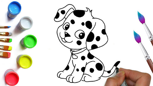 Как нарисовать собаку Далматинец, милые рисунки для срисовки, рисование и раскраска для детей и малышей