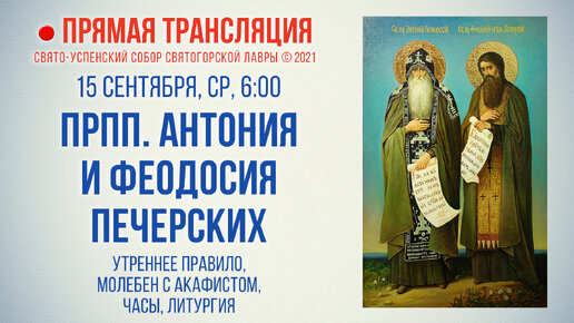 Прямая трансляция. Прпп. Антония и Феодосия Печерских 15.09.2021 г. (Православие)