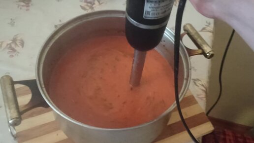 Взбиваем томатный соус с помощью блендера.