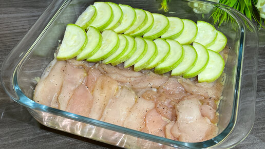 Беру кабачок, курицу и готовлю вкусный обед в духовке. ( получается сочное, насыщенное блюдо )