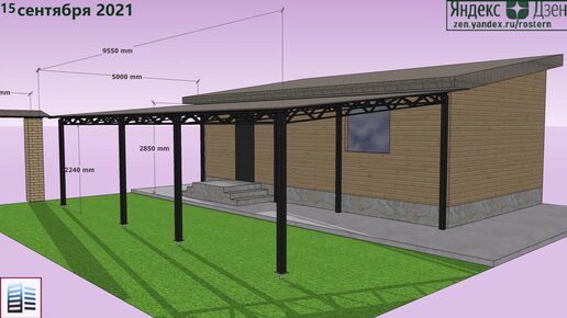 Макет пристройки-навеса к загородной дачи