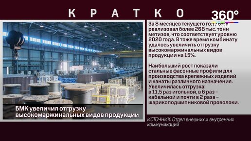 БМК увеличил отгрузку высокомаржинальных видов продукции