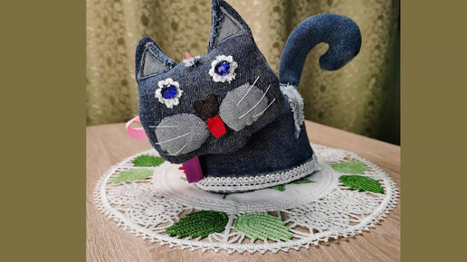 Такую игрушку не купишь в магазине! Порезала старые джинсы и смастерила милого котика