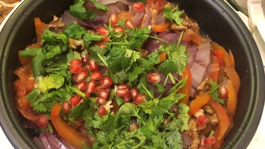 ЧАХОХБИЛИ из кур с грецким орехом и зёрнышками граната в мультиварке
