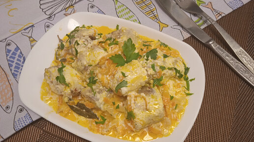 Сегодня решила приготовить минтай со сметаной на сковороде. Рыбка получилась очень сочной и нежной.