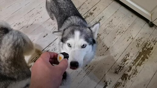 Пап, это че за шарик риса ? - Хаски попробовали суши, но не всем это понравилось