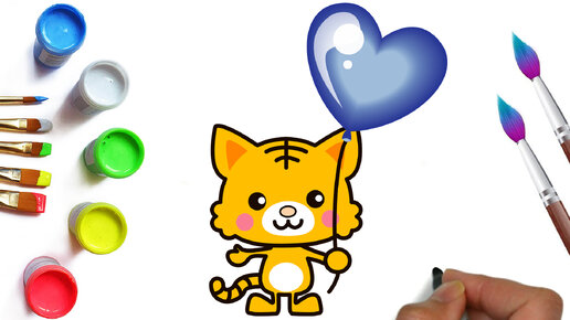Как нарисовать котика с шариком, красивые рисунки для детей и малышей, лёгкие рисунки для срисовки