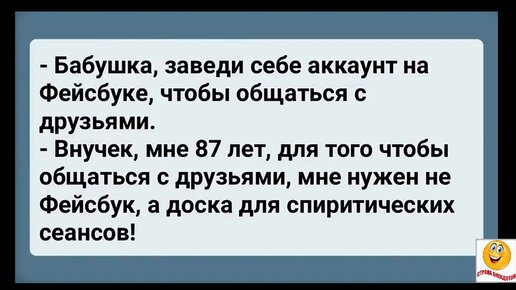 - Бабушка, за веди себе аккаунт на фейсбуке, чтобы общаться с друзьями. - Внучек, мне 87 лет, для того, чтобы общаться с друзьям