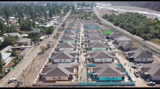 Алай: Гүлчөдө социалдык шаарча курулуп, 84 муктаж үй-бүлөгө тапшырылды.