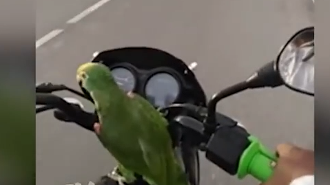 Попугай катается на мотоцикле. Забавные любимчики в главной роли.