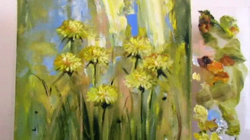 КАК НАРИСОВАТЬ ОДУВАНЧИКИ/ Уроки живописи маслом для начинающих пошагово с нуля
