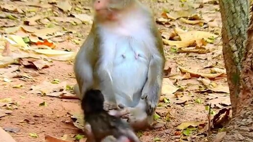 Когда маленькие обезьянки не кушают а балуется,то получают от мамы,они не понимают что маме делают больно