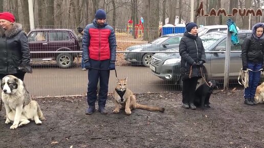 Пума на дрессировке вместе с собаками