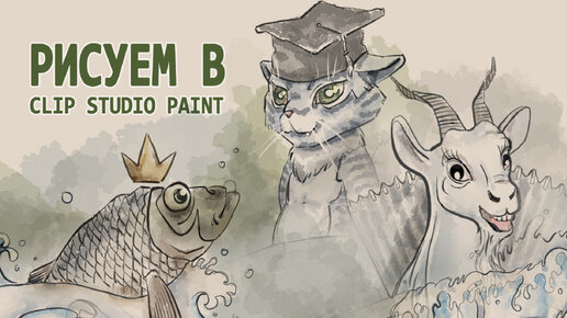 Рисуем ученого кота, козу с баяном и золотую рыбку / speedpaint