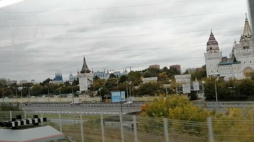 Олимпийские гостиницы,Измайловский Кремль, знаменитые многоуровневые Московские дороги - из окна поезда на МЦК