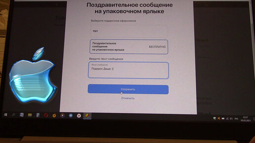 Подарочная надпись при покупке на сайте Эпл (Apple). Как сделать и как выглядит при получении.