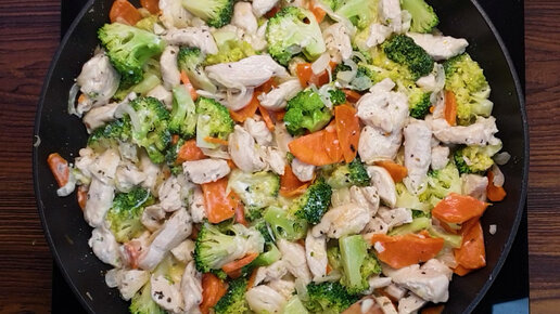 Куриное филе с Брокколи на сковороде. Chicken fillet with Broccoli in a pan.