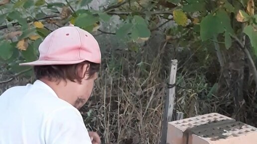Дешевый забор на участке из кирпичей, шифера и досок