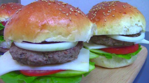 ВКУСНЕЙШИЙ ДОМАШНИЙ БУРГЕР ! Рецепт булочек и котлет для гамбургера.Homemade burger.