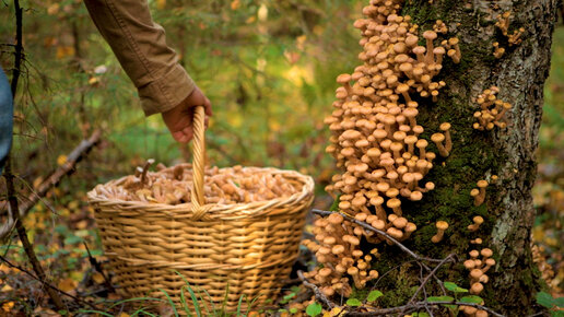 Собираем опята в лесу. Жаркое с грибами и пирог с опятами, сыром и шпинатом! Relax video