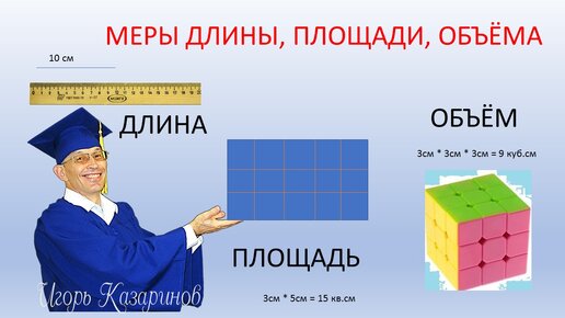 Меры длины, площади и объёма. Метры, квадратные метры, кубические метры, сантиметры, дециметры.