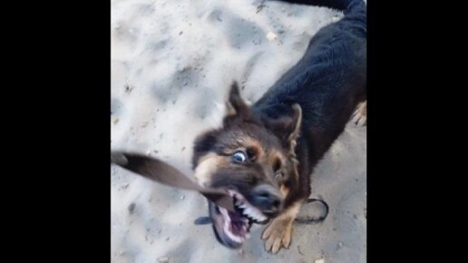 Рекс не любит гулять на поводке. Постоянно пытается забрать его у хозяйки. На это можно смотреть вечно