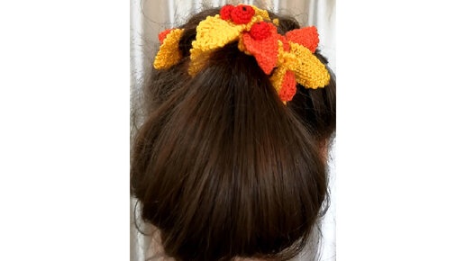 Идея школьной причёски на "Праздник осени". Вязаный декор "Золотая осень".