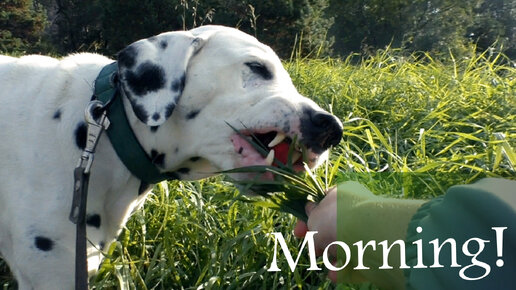 Далматин ест Траву! Осенняя прогулка с собакой утром