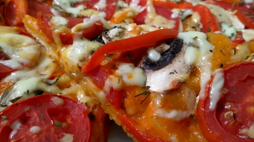 Приготовила овощную пиццу на тонком тесте,по итальянскому рецепту.Даже без мяса и колбасы получается вкусной.