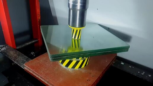 Гидравлический пресс против закаленного и обычного стекла.