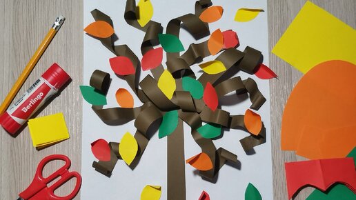Объемная поделка. Осеннее дерево из полосок бумаги
