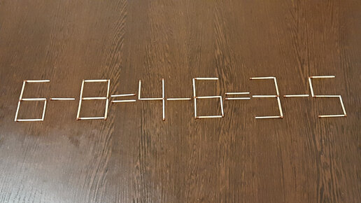 В равенстве (6-8=4-6=3-5) переложите 2 спички, сохранив равенство (покажу 4 варианта ответа).