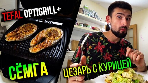 Стейк из сёмги и цезарь с курицей, готовим на Tefal OptiGrill+. Найтжрундели-грильвлог)