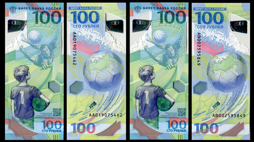 Памятная банкнота 100 рублей ЧМ по футболу 2018. Серии, тираж, цена.