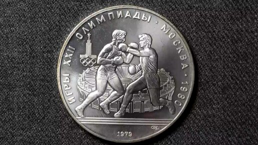 Серебряная монета 10 рублей к Олимпиаде 1980 года в Москве. БОКС. Выпуск 1979 года.
