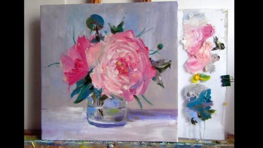 Как рисовать пионы/МАСЛО Пошаговый урок живописи маслом для начинающих