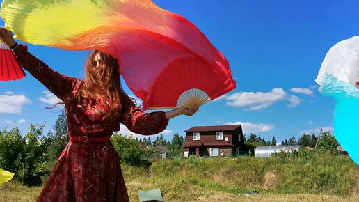 Танец прекрасных дев с веерами на природе
