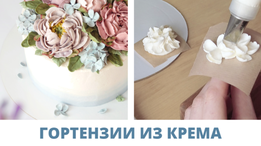 Гортензии из белково-масляного крема 🌸 Кремовая флористика - тренд в декоре тортов 🍰