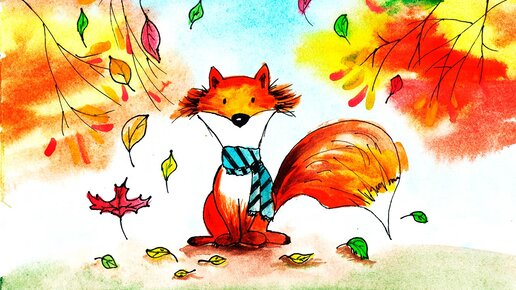 Как нарисовать лису акварелью. Симпатичная лиса в осенний день. Рисуем скетч
