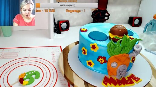 Оформление торта в стиле Губка Боб_How to make cake sponge Bob_Como fazer um bolo esponja Bob